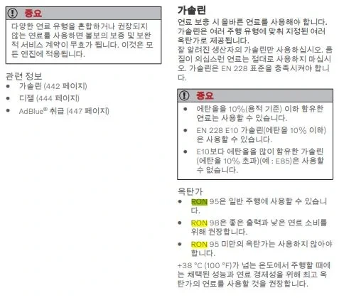 볼보 V60CC는 RON 95 이하 사용금지라서 고급유가 필수입니다. 그런데 그마저도 연비가 딱히 좋지는 않습니다.