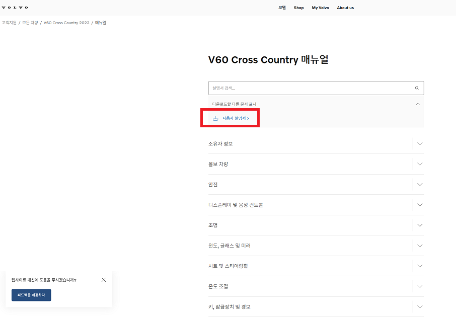 오직 홈페이지나 Volvo Cars 라는 어플내에서만 메뉴얼을 볼 수 있었다.
